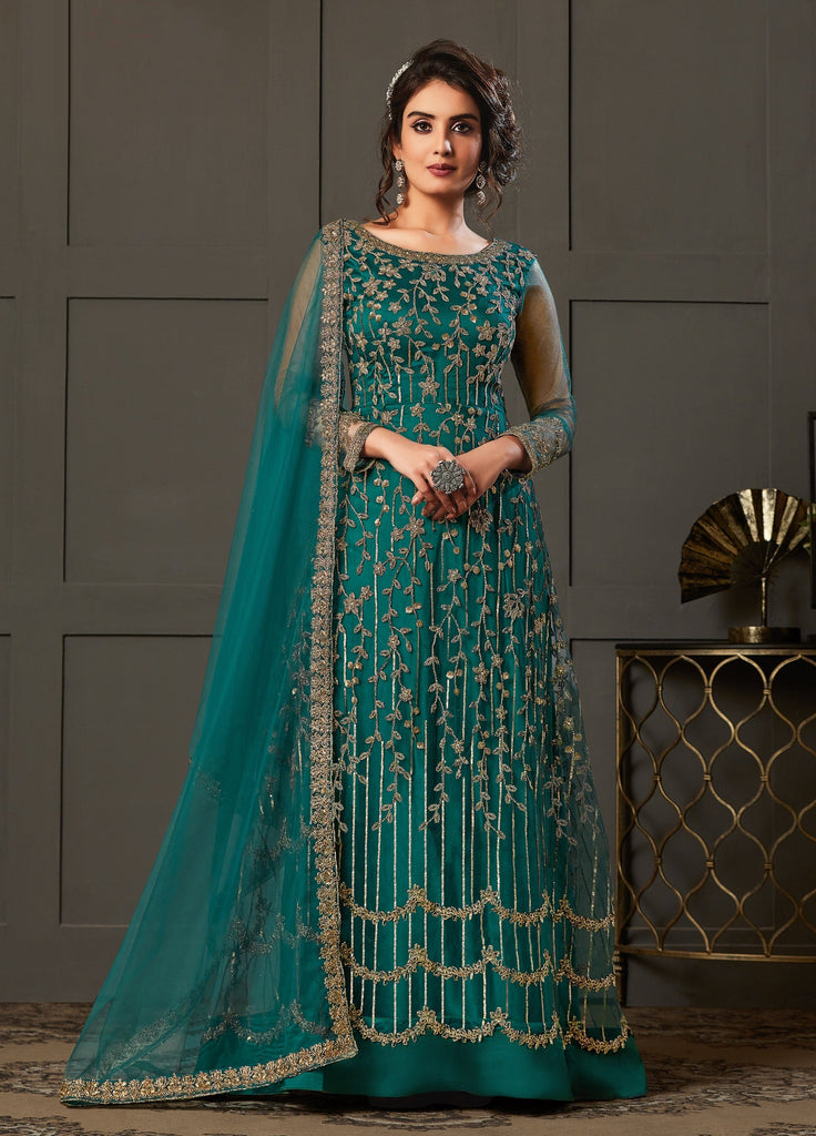 Peacock Blue Designer Embroidered Wedding Anarkali Suit Peacock Color Dress Peacock Blue Dress Indian Formal Dresses